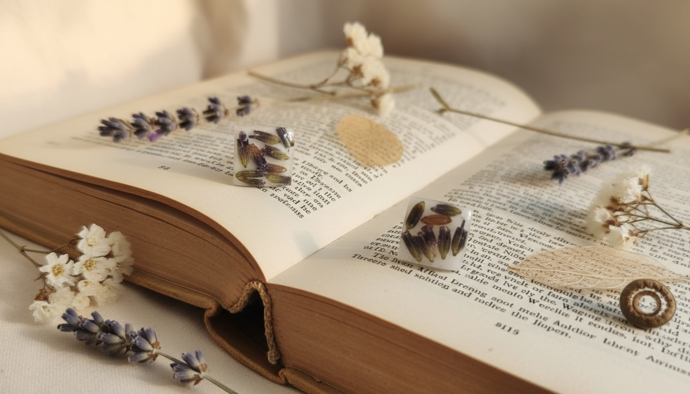 Please note: As these earrings are handmade with resin, small bubbles may appear in the material. This is a natural characteristic of the handcrafting process and makes each pair unique. Each piece is one-of-a-kind due to the use of real flowers.